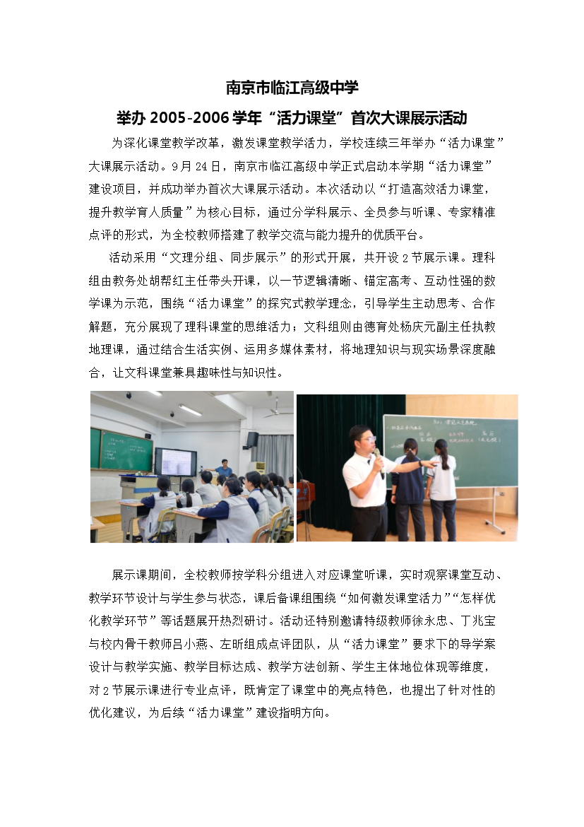 南京市临江高级中学 举办2005-2006学年“活力课堂”首次大课展示活动